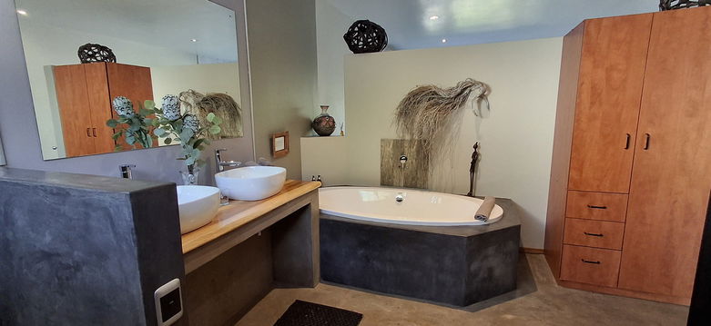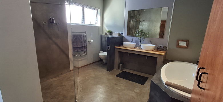 De open-plan badkamers met toilet zijn voorzien van een royale ovale badkuip, inloop regen-douche, dubbele wastafels, handdoek droograils, electrische haardroger en badjassen.
