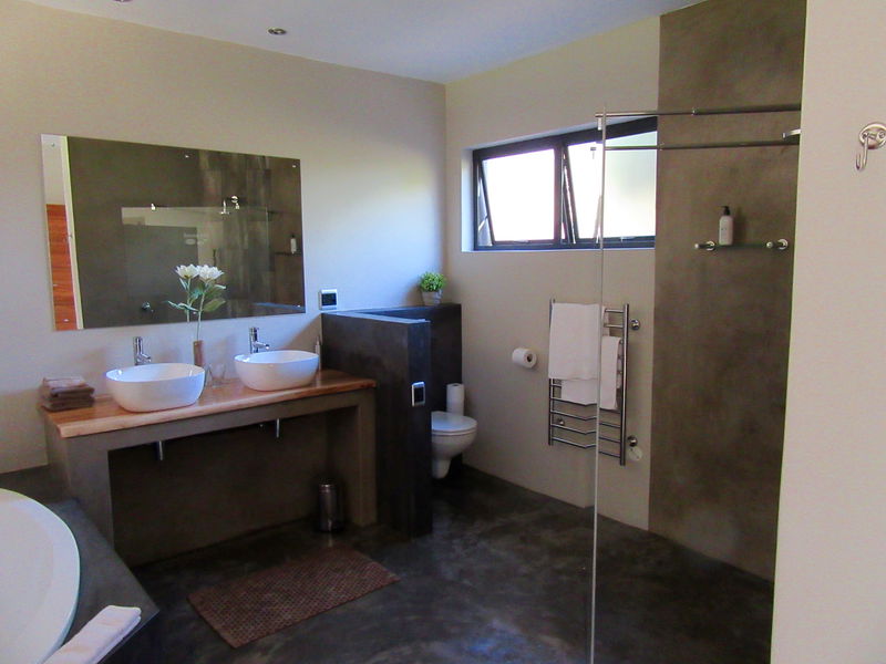 De open-plan badkamers met toilet zijn voorzien van een royale ovale badkuip, inloop regen-douche, dubbele wastafels, handdoek droograils, electrische haardroger en badjassen.